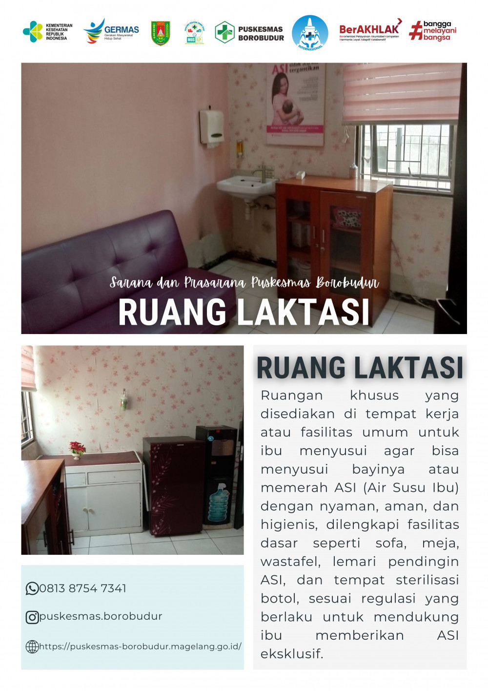 Berikut beberapa sarana dan prasarana penunjang di Puskesmas Borobudur :