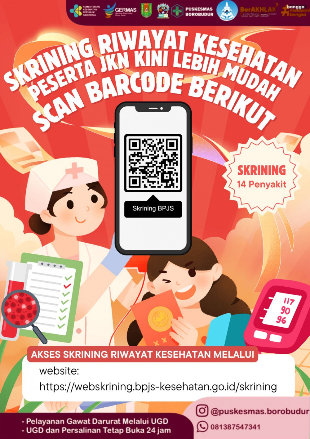 Jangan lupa skrining riwayat kesehatannya diisi ya Bapak/Ibu/Mas/Mba dan Adik-adik, bisa scan barcode di atas atau klik disini ya